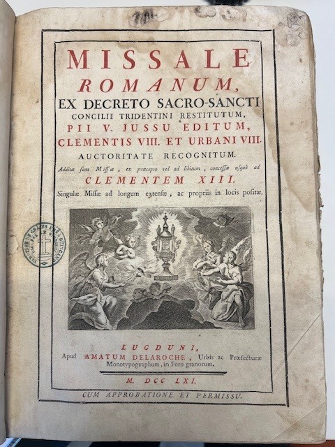 - Missale Romanum Ex decreto sacrosancti Concilii Tridentini restitutum, Pii V. Pontificis Maximi Jussu editum Clementis VIII. et Urbani CIII. auctoritate recognitum ununc denuo sub auspiciis sanctissimi domini nostri Clementis XIII...